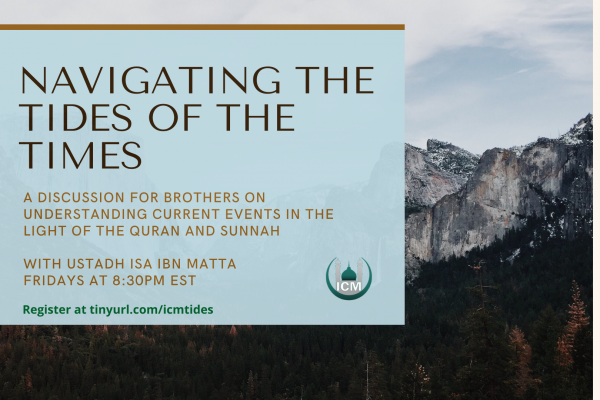 At 8:30pm EST Ustadh Isa will be launching a new series, “Navigating the Tides of the Times: a discussion for brothers on understanding current events in the light of the Quran and Sunnah” Some topics for upcoming sessions: the Presidential election, latest events involving Muslims in France, MMA fighter Khabib’s retirement...