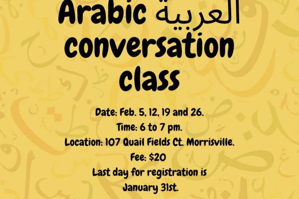 Let’s understand each other better with ICM Beginners Standard Arabic Conversation Course. ICM Women’s Committee Invites all sisters to join the Arabic conversation class every Friday of February. Dates: February 5, 12, 19, 26 Time: 6 to 7 pm Location: Islamic Center of Morrisville 107 Quail Fields Ct Morrisville. Fee: $20...