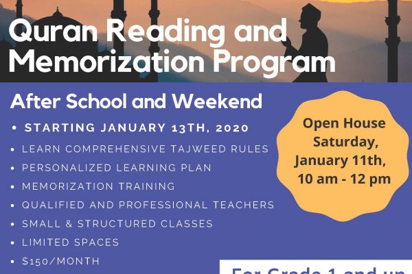 ICM Jumuah Announcements 1/10/20 Please donate for monthly expenses Tomorrow we will hold an open house from 10am to 12pm for the new Quran Reading and Memorization Program that is starting on Monday January 13. These classes will be held at ICM four days a week after school. Please join...